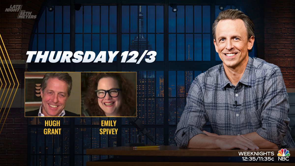 Late Night With Seth Meyers On Twitter Tonight Sethmeyers Welcomes Hugh Grant Hackedoffhugh And Emily Spivey